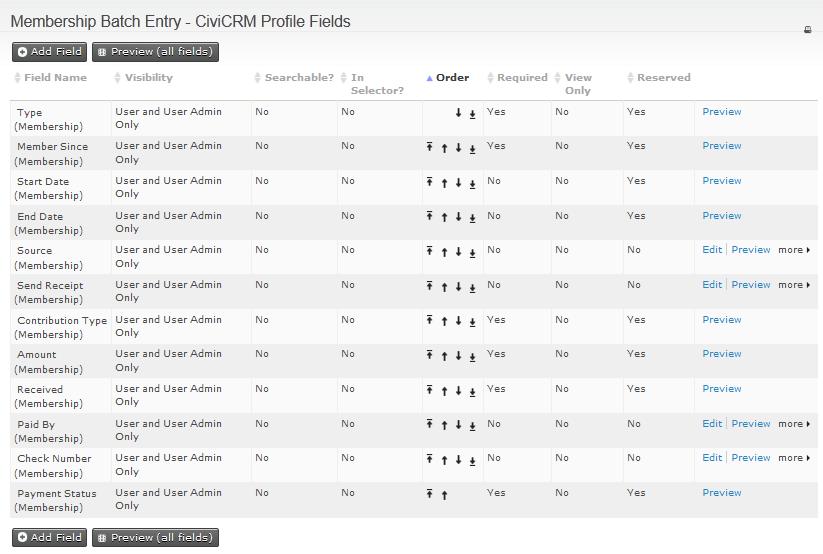 Above is CiviCRM’s default configuration for the Membership Batch Entry profile, which is used when you record information about a contact’s membership payment.