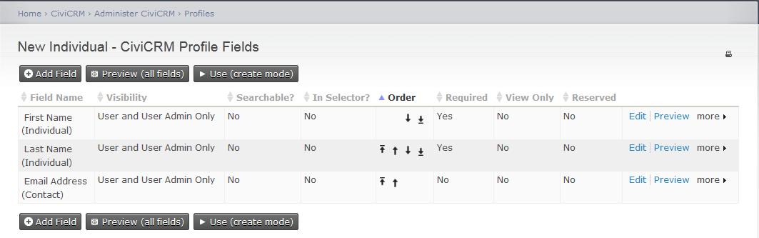 To alter the profile used when you want to create a new contact for an Individual, Household, or Organization while recording the contribution, update the reserved profiles called New Individual, New Household, or New Organization accordingly. To change the fields of information you want to collect for these contacts: