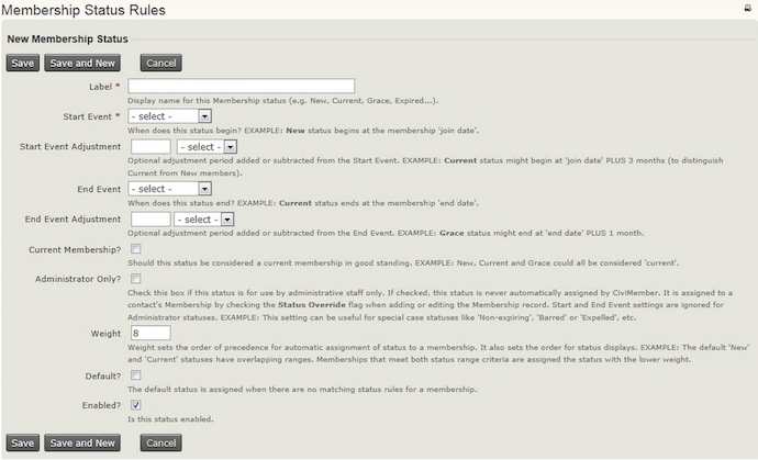 When you edit or add a new membership status the following form appears.