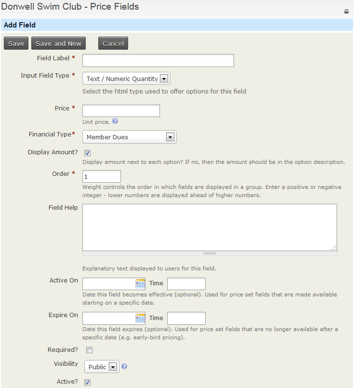 Visibilitycan be set to Public (visible on your website to those who can see the membership sign up page) or Admin (visible only through the back end and then only to users with appropriate permissions).