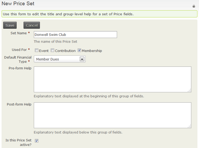 You must also have defined all the financial types you will need before you can create the price set. (Refer to the Contributions section for information on financial types)