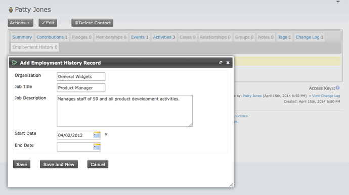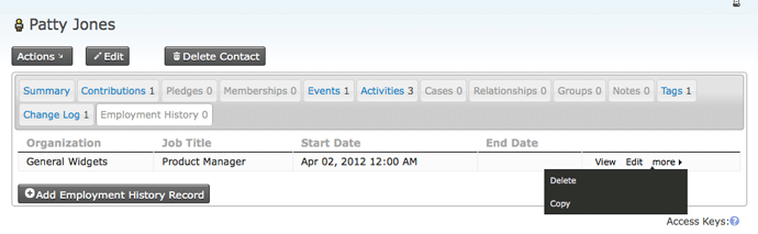 If a custom field set is active, its fields can be viewed and changed. Otherwise, the fields are in the CiviCVRM system but hidden from the user interface. This option can be valuable for managing your data, especially if you are migrating from an existing database system.
